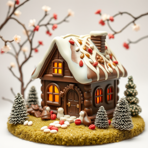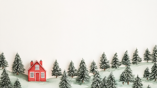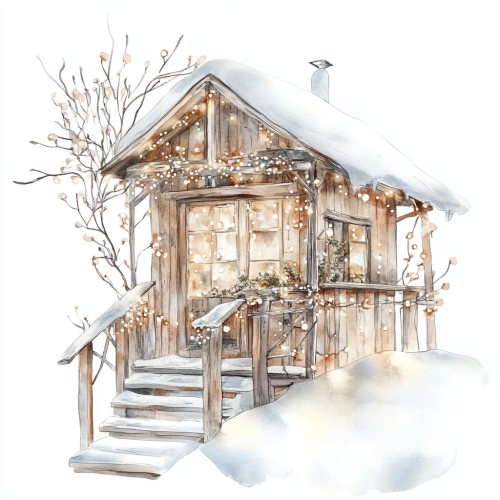 watercolor wooden winter house decorated for christmas with lights in whimiscal and beautiful dreamy style, soft brown, isolated on white background --v 6.1 --personalize l6wfwr4
