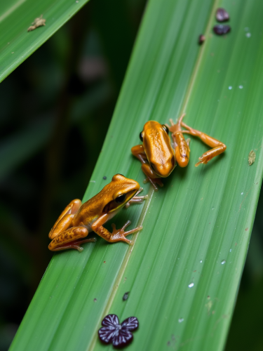 capsule house with wood structure and polycarbonate sheets covering the entire outside so that the capsule is transparent, sitting on top of a rock in the middle of a brazillian jungle, with mountains, the forest is thick with plants some that look exotic like ferns and palms and the rock has many suculents growing on it as well as moss, the capsule house is completly transparent, inside there is king size bed and the setup is like a 5 star hotel, there is also a mosquito net, carpet, and two pendants on each side of bed, the area outside the capsul is natural, the capsule is located on top of a giant bolder that is 4 meters tall, the capsule has a small wood path with tiny LED lights leading up to it, and small stairs that climb the rock on the side made from wood, everythere there are tiny LED lights lighting up the plants that give ambience, the capsule is located in shade but you can see the sunlight glowing through the trees, mystical ambient, it is late in the day and close to sunset, and the sky has some color, make it all realistic, real life image, the capsule house is DYI looking, and the polycarbonate sheets used are the ones from home depot that have ridges on it so the capsule is 80% transparent, the front of the capsule face has a sliding door and windows, the boulder that the capsule is sitting on is larger than the capsule so that there is space to walk around it with a small wood path, there is also a white freestanding tub about 6 meters on the front of the capsule that overlooks the view, the image is after it raind so everything is wet, the capsule should have a DYI look and be shaped like a cyliner, not rounded, there is no glass, the entire capsule is covered with polycaronate sheets with ridges like roof singles