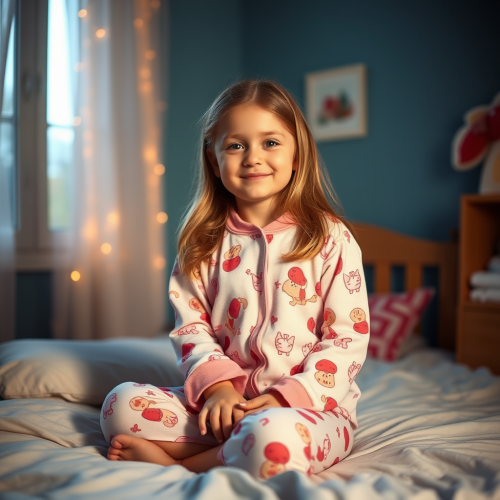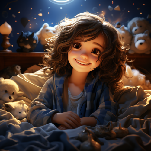 generate an image of brunette little girl wearing a pajama sleeping on the bed, pixar style --v 5.2 --s 950 --style raw