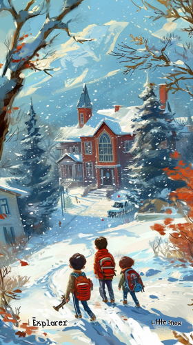 snow, kindergarten, kids, parents, write text "Little Snow Explorer", HD, --ar 9:16 --v 6.0