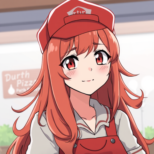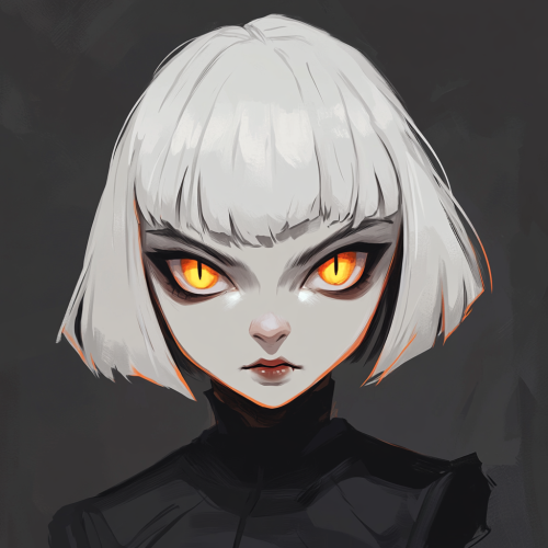 A young girl. Late teens. She has white skin and short hair, up to her nape. She has very sharp eyes, and cat like irises. She smiles with malice, as she presents herself as an agent of good, but her intentions are all evil. anime style.
