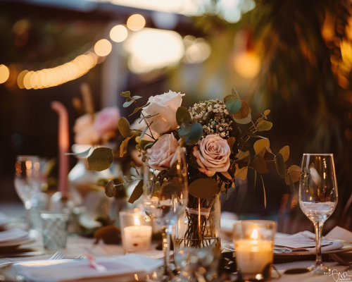 a photo of delicate wedding dinner, real photo, happy mood --no people --ar 5:4