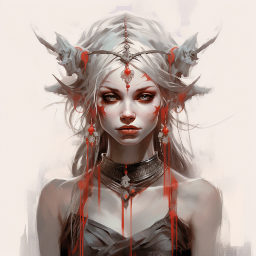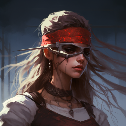 A beautiful elf woman with red tips on her ears who is blind and blindfolded.