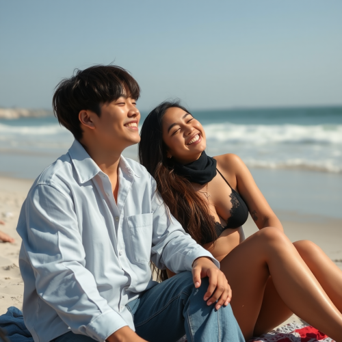 Stanley Kubrick, Eyes Wide Shut, occult mysticism beautiful cyber angel girl with blonde hair and wings. She is wearing Ralph Lauren. She is riding a horse on the beach. Legs and skin showing --ar 16:9 --style raw --v 6.1