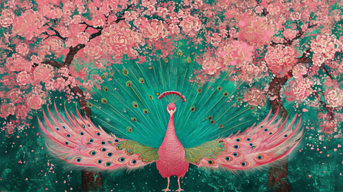 Green Chromaki Background, Pink Peacock Tree on Both Sides --ar 16:9 --v 6.0