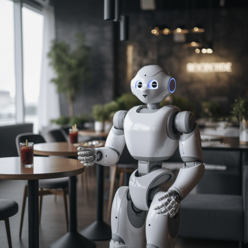 humanoid robot working in hospitality serving food to human consumers --v 5.0 --s 250