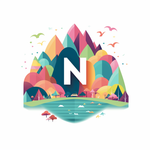 Company Logo for N with many colors, Door Knocking, geographic design, vector style, flat, warm tones of blue, green, and pink, be energetic, Employee well-being, employee benefits, employee care, employee outing, fun