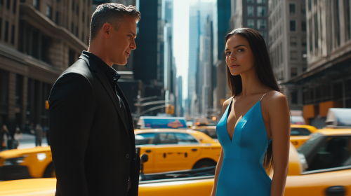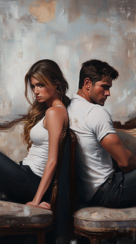 a man and woman sitting back-to-back, but there is an underlying sense of anger between them., realistic style with high detail., with an attractive man and woman sitting back-to-back on couches. --ar 9:16 --v 6.1