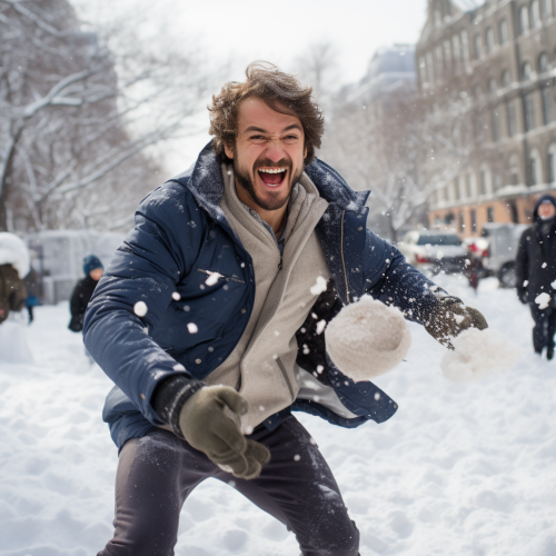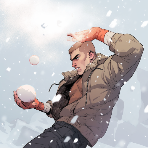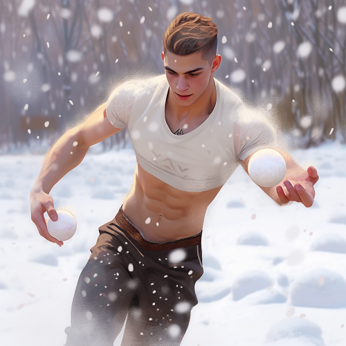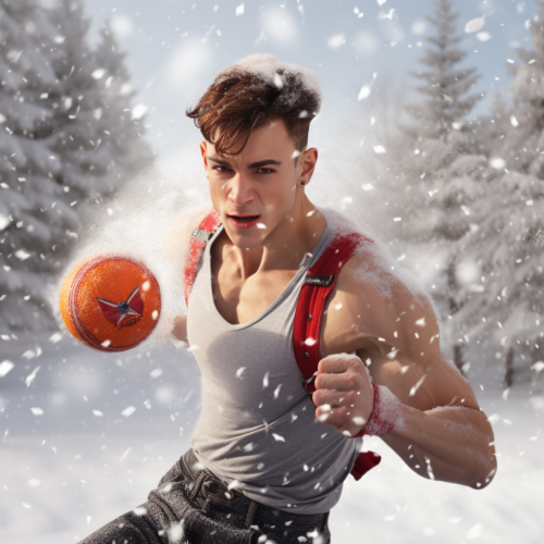 an attractive man having a snowball fight, inspired by kj apa tom daley adam rippon. photorealism