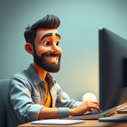 A man wearing glasses with a happy expression.