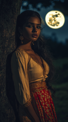 A lone medieval soldier in full armor sits under a sprawling, ancient tree by a calm lake at night, gazing out over the water with a look of quiet sadness. A bright, full moon illuminates the scene, casting a soft glow on the landscape and reflecting on the water's surface. The sky is filled with twinkling stars, adding a sense of peace and solitude. In the background, gentle rolling hills are faintly visible under the moonlight. The scene is tranquil, yet carries a deep, melancholic atmosphere, capturing a moment of reflection and solitude. Highly detailed, realistic, cinematic lighting, ethereal mood