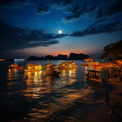 **picture view big full moon at phi phi island , golden moon , big moon gold color , no cloud, sand , island , most beautiful , can sell , ultra detail, full moon party <@1151883066864836719> (fast)