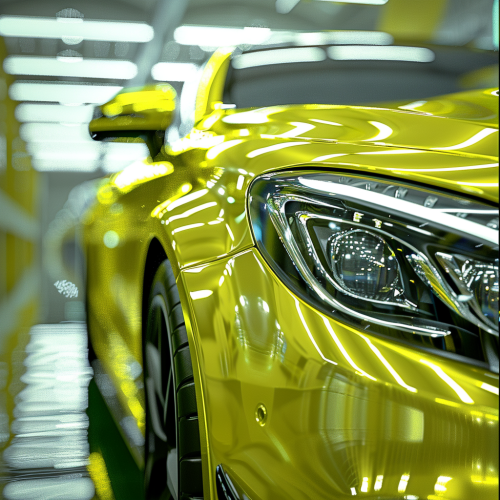 new Mercedes car, the color of a greenish-yellow variety of chrysoberyl (cymophane) with a specific light effect of a glare running across the surface, real photography, ultra-realism --v 6.0 --s 250