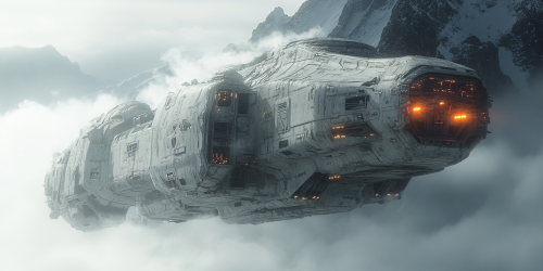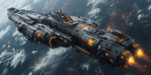 frigate class battle cruiser sized mobile suit carrier, open hangar launching giant mechs the size of gundams, terminator armored infantry, style of studio ghibli, star wars technology, highly detailed, --ar 2:1 --s 750