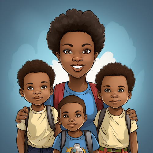 cartoon image of happy latino boy with his mom waiting in waiting room pixar style