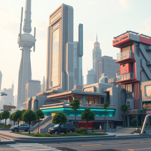 vector 2 d logo for a new real estate corporate that will have multiple verticals. The logo should be futuristic, minimalist, and multicolour. --v 6.0 --s 250