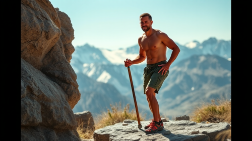 a very excited college aged man flexing one arem downwards towards the camera while outside in the grass --ar 16:9