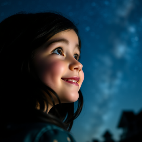 An illustration inspired by the song Tentai Kansoku (Stargazing) by BUMP OF CHICKEN. A group of friends looking up at a vast, starry night sky, standing on a grassy hill under a full moon. The scene captures a sense of wonder and adventure, with constellations and shooting stars illuminating the dark, quiet night. The atmosphere feels nostalgic and dreamlike, filled with the magic of stargazing together.