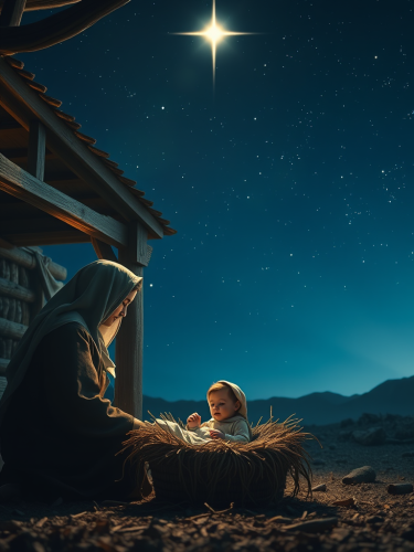 "A man sits at the peak of a mountain, playing a baÄŸlama under the dark night sky. The moon and stars shine brightly above, casting a soft glow over the scene. The man, deep in thought, looks out at a distant cityscape illuminated by the twinkling lights of the city below. The baÄŸlama's strings vibrate softly in the still night air, blending with the peaceful atmosphere. The landscape is serene, with the vast sky and twinkling stars creating a sense of quiet solitude."