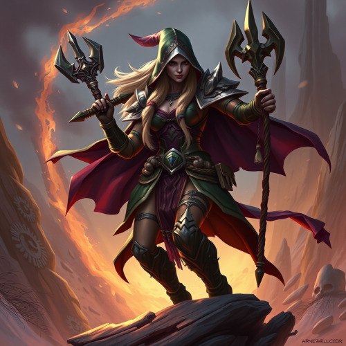 a marble statue of the Hearthstone character Sylvana, golden and red applications --v 6.0