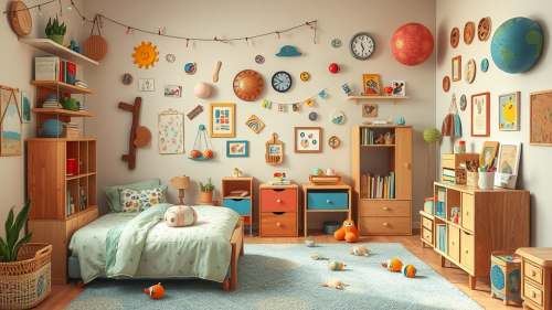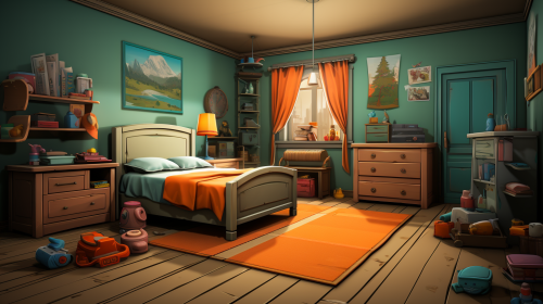 Animation decor, baby nursery room, south park studios animation style --ar 16:9 --s 750 --style raw