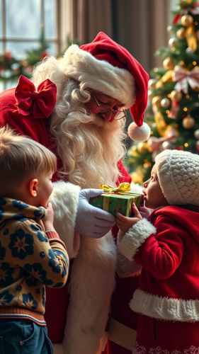 A Polaroid photo of two children on Christmas morning, excitement as they unwrap gifts. The room is softly lit with warm lights from a decorated tree in the background, vintage holiday decorations filling the cozy setting. Muted color palette and natural film grain from 1960s Polaroid. --style raw --ar 4:3 --v 6.0