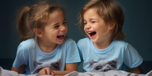two little cute laughing kids are trying to put on one t-shirt together, hyper realistic, 8k, photorealism, soft lighting, v5, high definition with close attentional to anatomical accuracy --ar 2:1 --v 5.2
