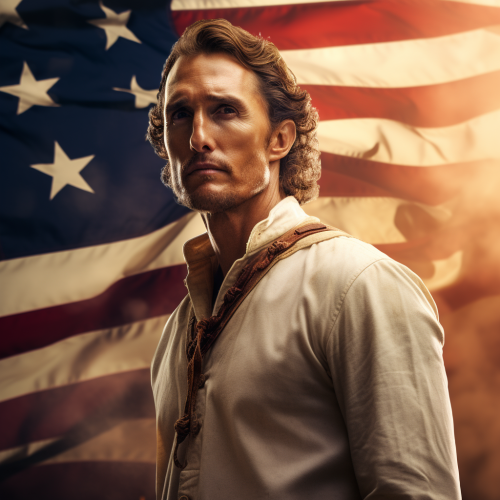 cowskull with american flag background, western landscape, in the style of aggressive digital illustration, uhd image, watercolorist