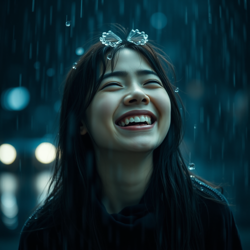 Fashion shoot for clothes, a well dressed smiling man in classy light summer clothes , is standing in the rain inside the Norwegian forest in winter landscape, bad weather with rainstorm, 65 mm, photorealistic, fashion photo shoot for Vogue magasine, uhd image, 8k, in the style of saturated colorism, --ar 7:4 --style raw --stylize 50 --v 6.1