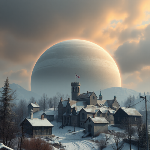 a secret that nobody knows in a clear sky with no clouds. the horizon is far away. the sun rises and set simultaneously in both directions. a single black and white hawk with a red belly flies in the distance. there are horses that run in the foreground from a snake the size of the empire state building. this is on an alien planet with hilltops of green.