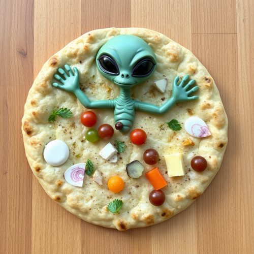 alien playing guitar by a campfire, the campfire and alien are floating through space, there is a planet in the background is a peach. style of Hayao miyazaki