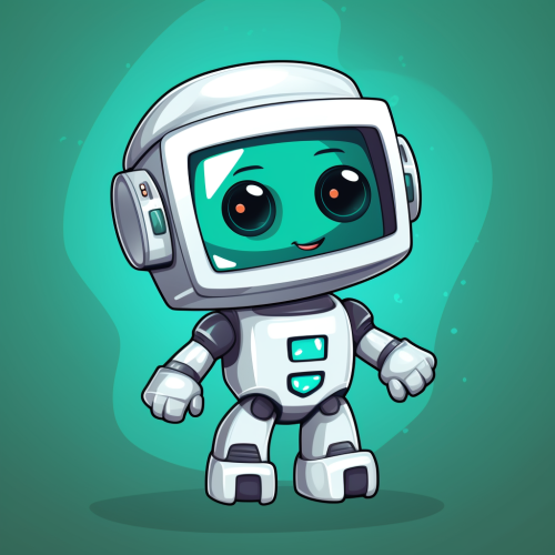 Cute robot with a turquoise and white color scheme, featuring a cute design, big eyes, and glowing LED lights on the face. Set against a black background, the robot has a simple structure with a square body and small legs, Vector art in the style of Katsuhiro. The robot is in a standing pose, captured in high resolution with professional lighting, soft shadows, and a symmetrical composition. The overall expression is friendly. --ar 51:64 --s 50 --niji 6