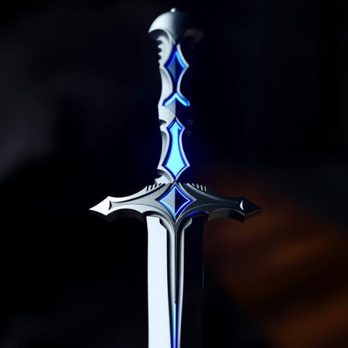 A shiny black dagger with a blue halo.