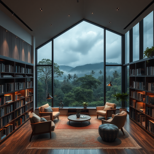 Premium interior space of a modern building, the photo should show a spacious and bright living room with floor-to-ceiling windows. The interior decoration style is mainly modern and simple, and the furniture is neat and comfortable, adding to the warmth of home