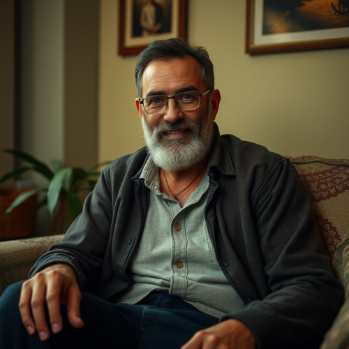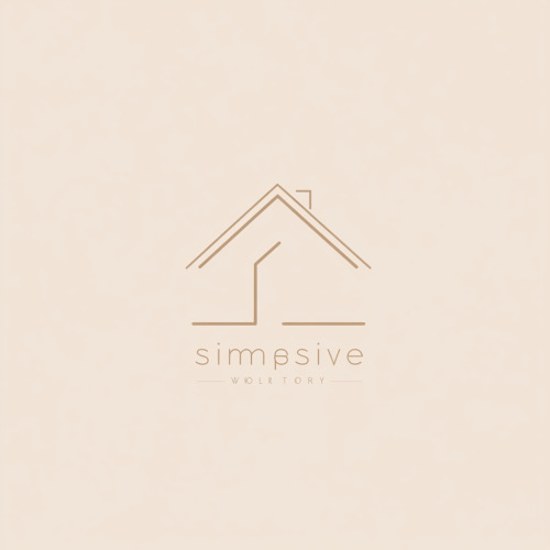 Design a sleek, modern logo for an interior design studio named 'SimpleStyle.' The tagline is 'your home should tell your story.' The logo should visually represent the concept of home and interior design, incorporating elements like a house silhouette, floor plan lines, or furniture icons. Use a minimalist style with warm tones and soft shapes to evoke a sense of comfort and personal connection, while keeping the overall design clean and professional --v 6.1