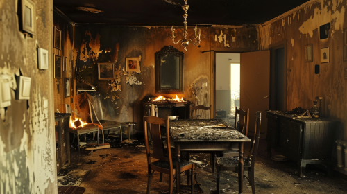 burnt walls inside a beautify modern home --ar 16:9 --style raw