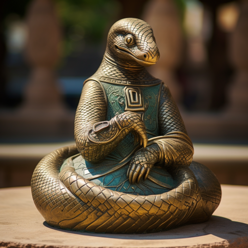 Egyptian statue of a cobra, the cobra has its hood spread and is about to attack