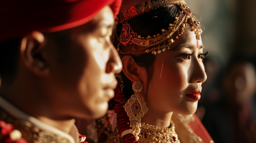 young Guam man and woman couple getting married, realistic, photography, --ar 9:16