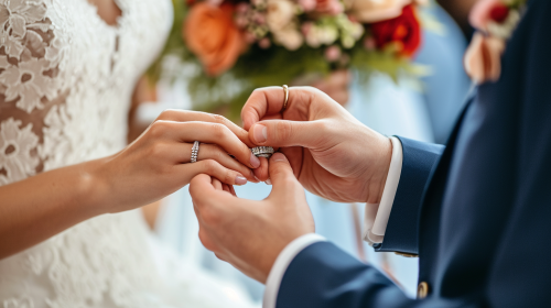 a photo of a black bride and groom hands, wearing ring, focus hand, wedding --v 6.0 --ar 4:5