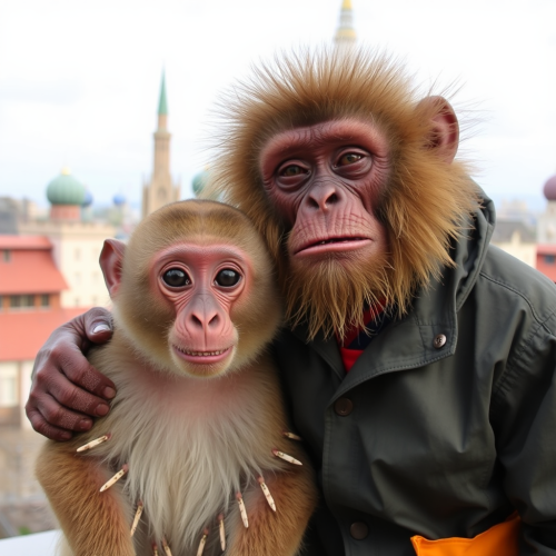A snake and a monkey playing together.
