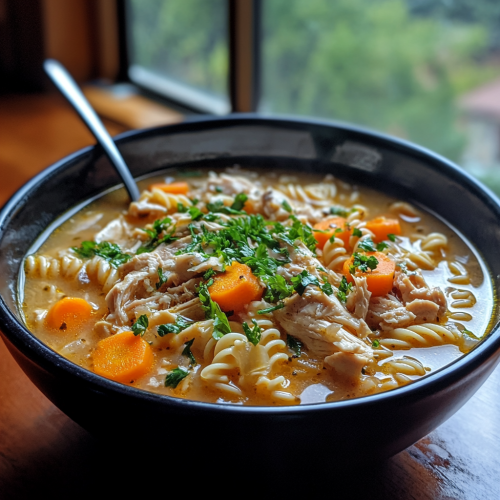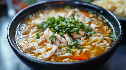 amateur photo from reddit. taken with an iphone 15 pro. JUICY mouthwatering delicious crack chicken noodle soup) , ingredients : --style raw --ar 16:9