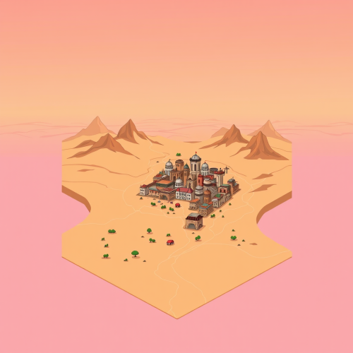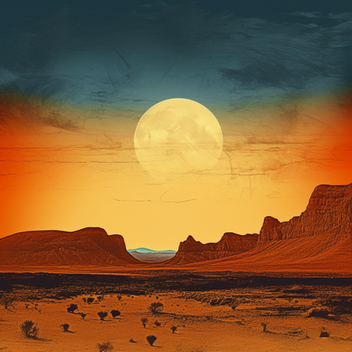 cosmic west texas desert, golden moon, bauhaus art, gradient texture, grainy