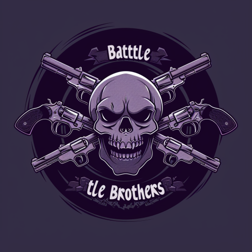 Cartoony logo, Named "Battle Brothers", Skull with guns surrounding in a circular shape, 4k, ultra hd