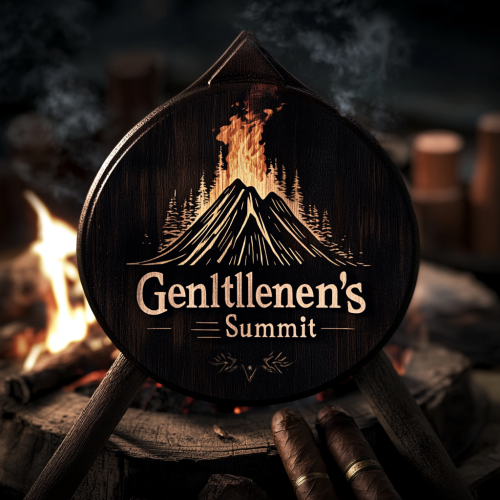 create a cool, fun, clean, classy logo for a yearly event called the "Gentlemen's Summit" consisting heavily of beer, poker, cigars, a fire pit, and woods