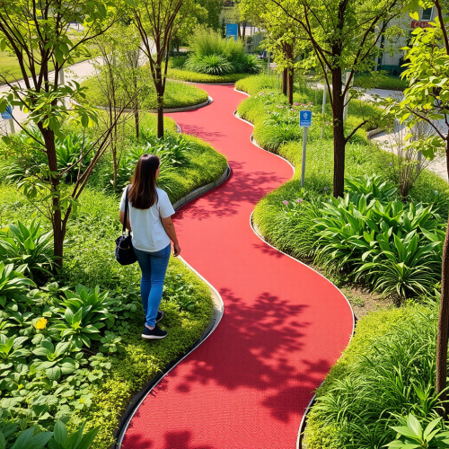 Imagine a vibrant, sunlit scene of a beautiful day in a lush, green park. The sky is a perfect, clear blue, dotted with a few soft, fluffy clouds. Sunlight filters through the trees, casting a warm, golden glow over the grass, which sways gently in the breeze. Flowers in full bloom paint splashes of color across the landscape, and birds chirp joyfully from the treetops.