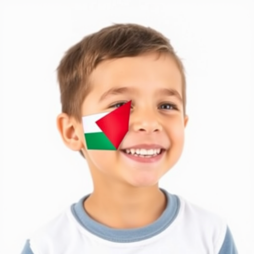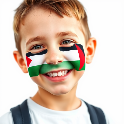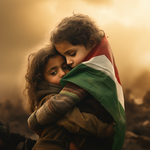 one israeli child with israel flag in the hand hugging a palestinian child with palestinian flag in the hand