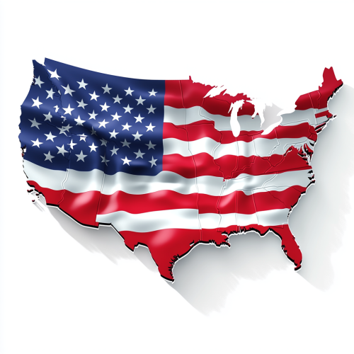 Generate an image of what a country profile pdf report for the USA might look like. I want to include a short written description, the usa flag, demographic info like population over time and male/female percentage, median age, land mass, an image of the location on the map. Use most important stuff to make image (not everything needs to be included)