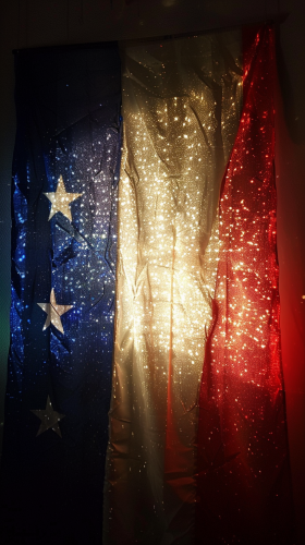 Italian flag is lit by the projector. Very beautigul lighting. The flag is with a little bit of glitter. Realistic. The flag occupies the whole picture. --ar 9:16 --v 6.0 --style raw