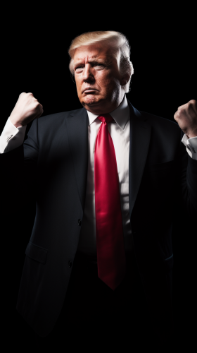 donald trump, wrapped in a palestine flag holding his fist up in the air, showing support for palestine --ar 9:16 --c 10
