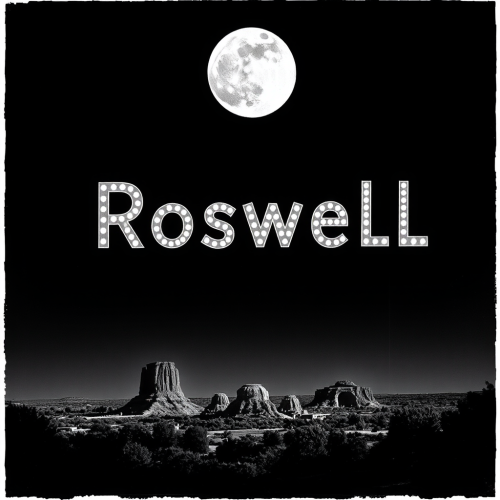 grey alien looking into hands, holding a glowing bright levitating microchip in shape of a large X, UFO and 2 rivers and 808 numbers in sky background